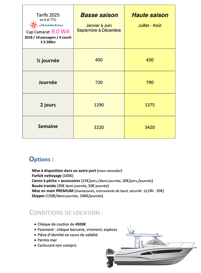 Location avec skipper (150€/demi-journée, 240€/journée) : vous n’avez pas besoin de savoir naviguer pour louer un voilier ou un bateau moteur, nous pouvons vous proposer un skipper qui s’occupera de la navigation ou vous assistera, ce qui vous permettra de passer des vacances relaxantes, sans tracas et en toute sécurité. Option disponible pour toute la durée de votre croisière ou simplement pendant 1/2 journée ou 1 ou 2 jours, le temps de prendre en main votre bateau et de découvrir votre bassin de croisière.
