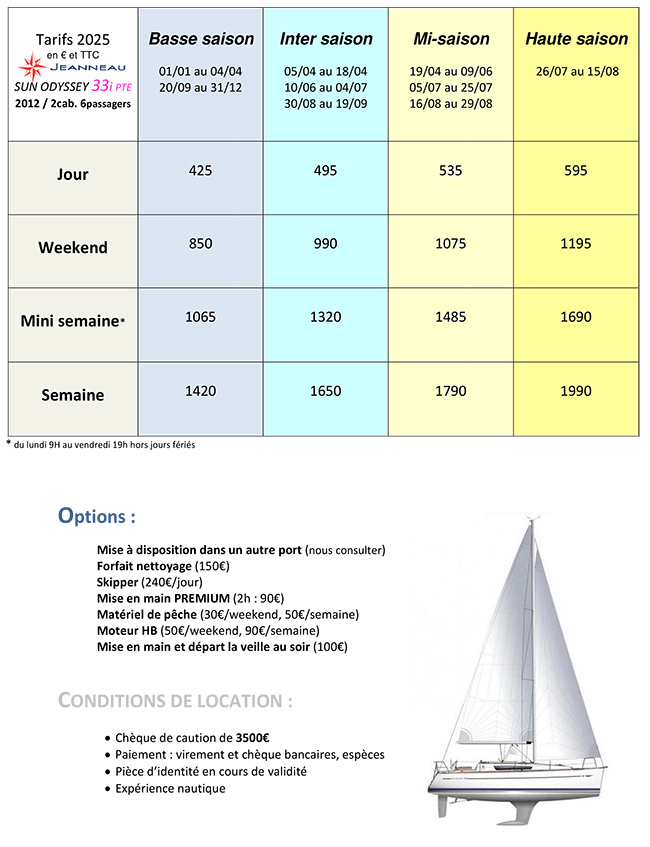 VOILE (2h : 90€) : vous avez décidé de louer un voilier et vous avez déjà navigué mais... depuis longtemps, pas sur un si grand bateau, pas seul aux commandes! A bord du bateau que vous aurez loué, profitez d’un cours particulier pour vous familiariser avec votre bateau ou rafraîchir vos connaissances en matière de navigation : utilisation de l'électronique embarquée, de l'accastillage, des équipements spécifiques du bateau mais aussi aide aux manœuvres de port, navigation en équipage réduit, études cartographiques de votre secteur de navigation, inventaire complet du bateau, etc.